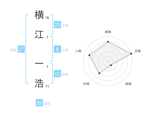 横江 一浩さんの総格は35画の4点!
