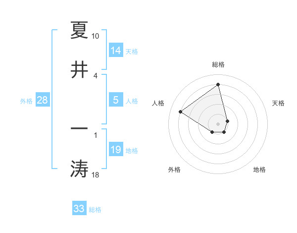 夏井 一涛さんを姓名の画数から五運を鑑定
