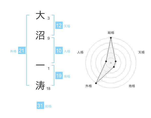 大沼 一涛さんの総格は31画の5点!