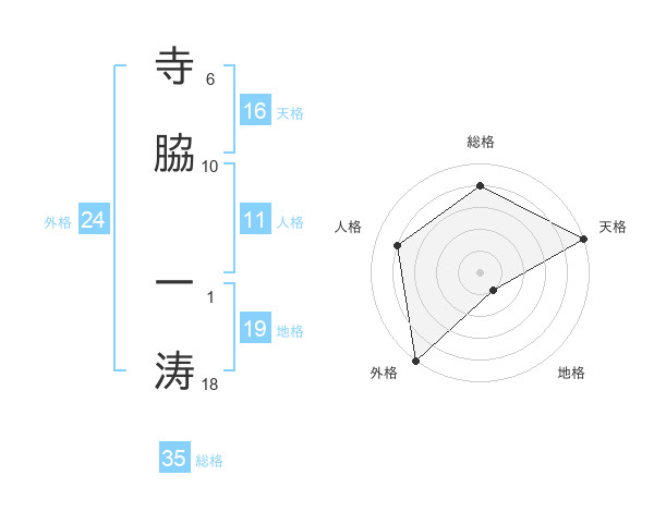 寺脇 一涛さんの天格は16画の5点!