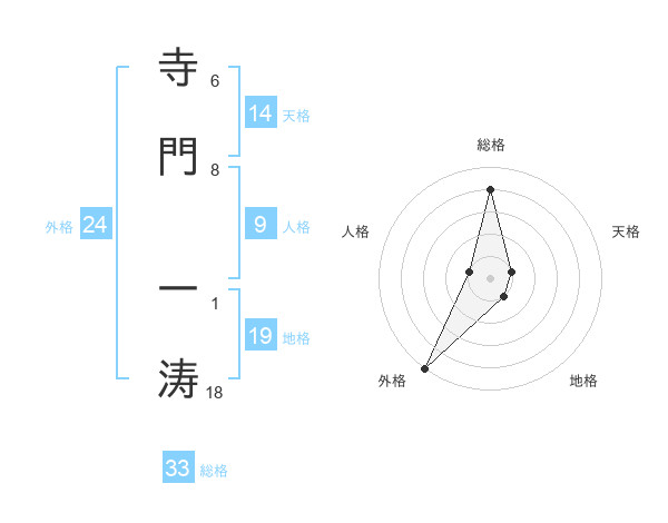 寺門 一涛さんの総格は33画の4点!