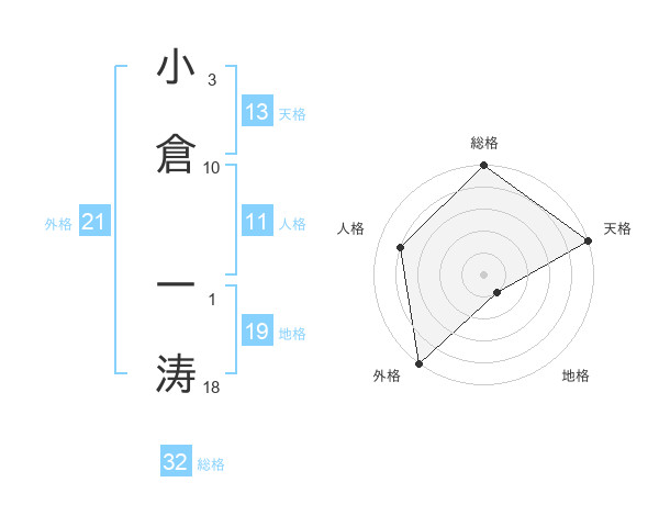 小倉 一涛さんを姓名の画数から五運を鑑定