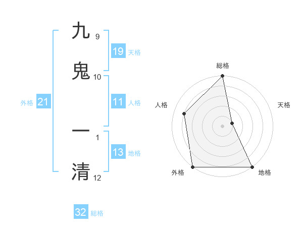 九鬼 一清さんを姓名の画数から五運を鑑定