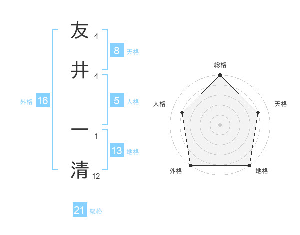 友井 一清さんの総格は21画の5点!
