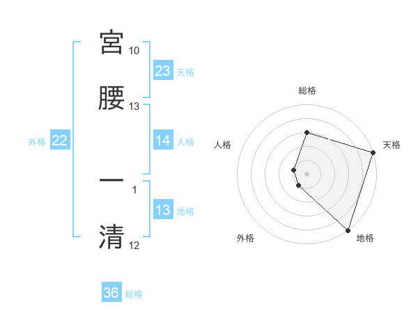 宮腰 一清さんの天格は23画の5点!