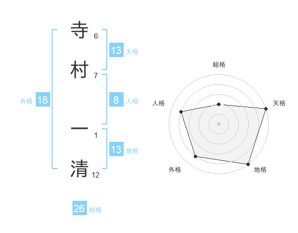 寺村 一清さんの天格は13画の5点!