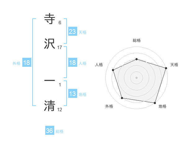 寺沢 一清さんの総格は36画の3点!