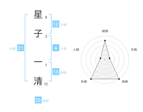 星子 一清さんの総格は25画の4点!