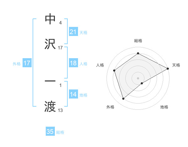 中沢 一渡さんを姓名の画数から五運を鑑定