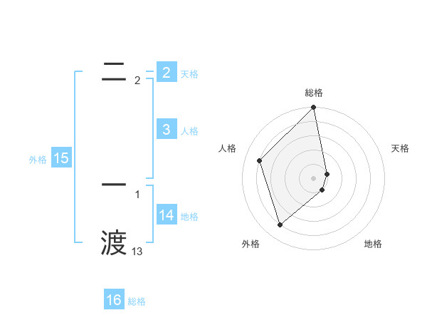 二 一渡さんの総格は16画の5点!