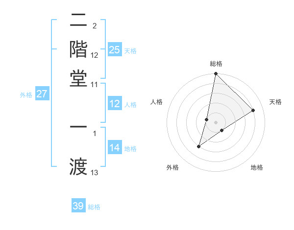 二階堂 一渡さんの総格は39画の5点!