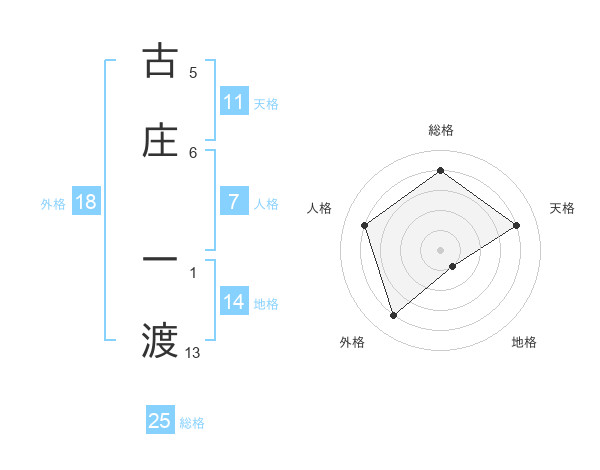 古庄 一渡さんを姓名の画数から五運を鑑定