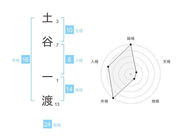 土谷 一渡さんを姓名の画数から五運を鑑定