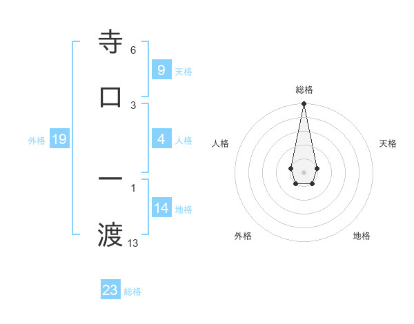 寺口 一渡さんの総格は23画の5点!