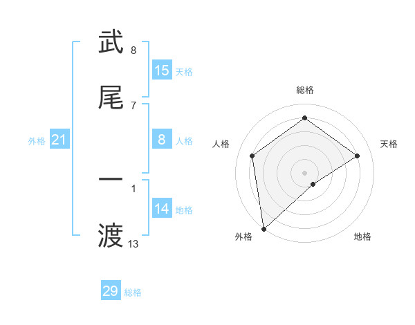 武尾 一渡さんの総格は29画の4点!
