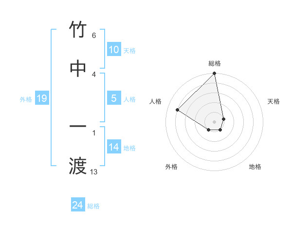 竹中 一渡さんを姓名の画数から五運を鑑定