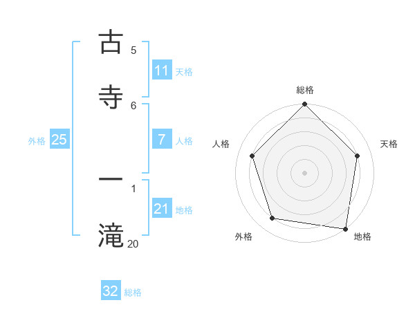 古寺 一滝さんを姓名の画数から五運を鑑定