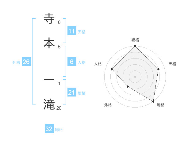 寺本 一滝さんの総格は32画の5点!