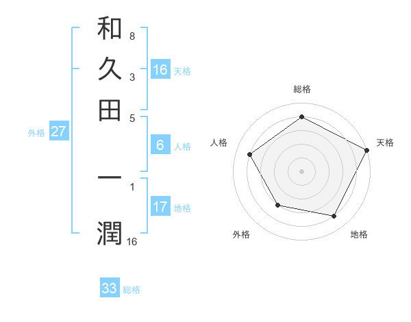 和久田 一潤さんの天格は16画の5点!