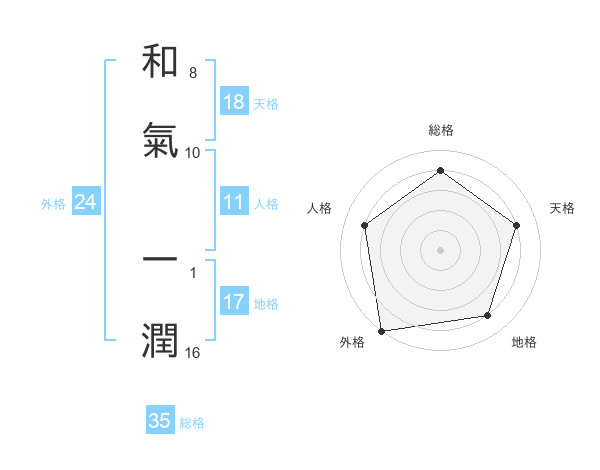 和氣 一潤さんの総格は35画の4点!