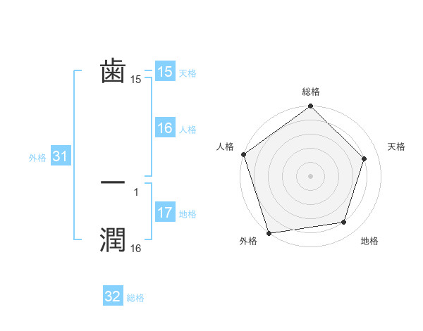 歯 一潤さんの天格は15画の4点!