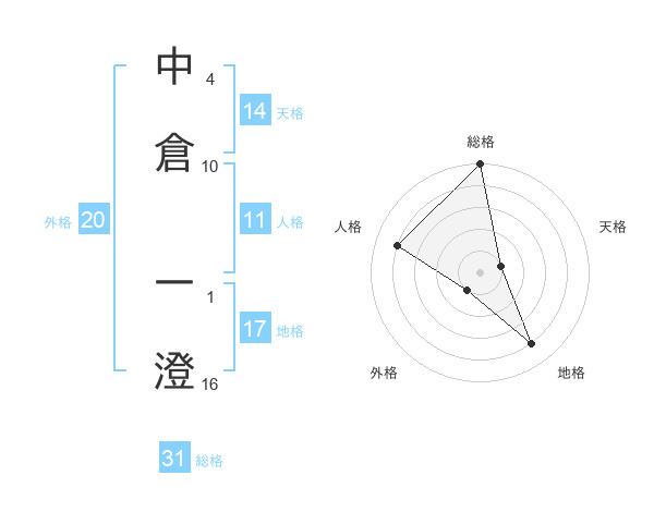 中倉 一澄さんを姓名の画数から五運を鑑定