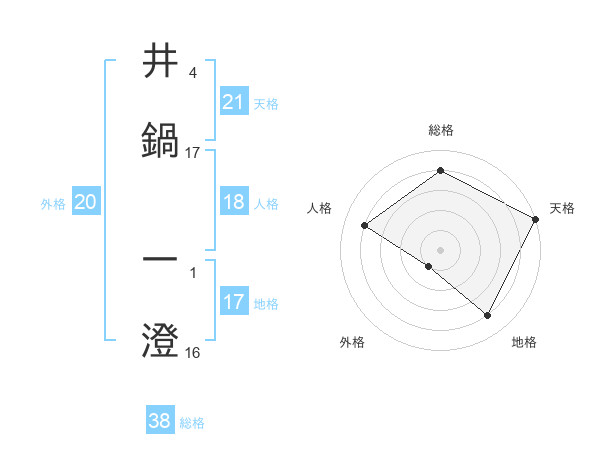 井鍋 一澄さんの地格は17画の4点!