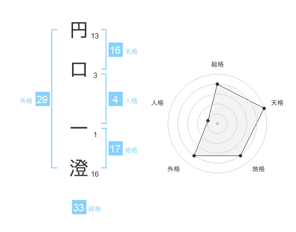 円口 一澄さんの総格は33画の4点!