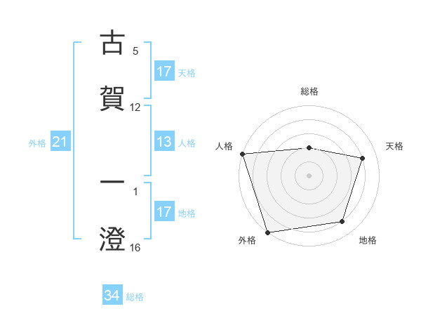 古賀 一澄さんを姓名の画数から五運を鑑定