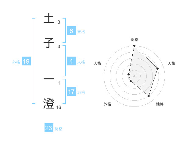 土子 一澄さんの総格は23画の5点!