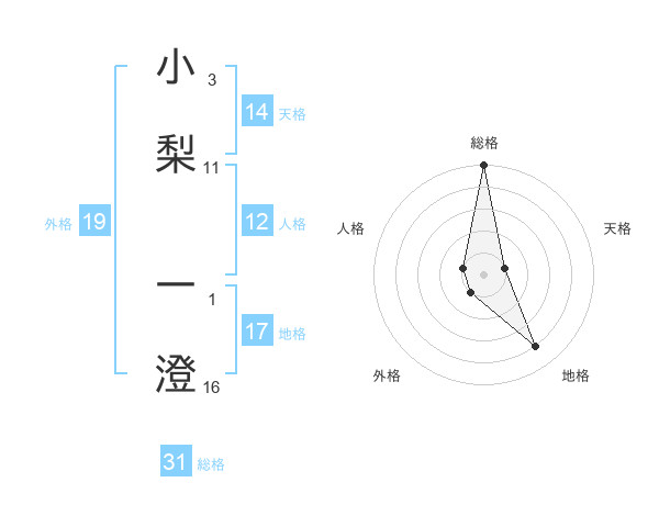 小梨 一澄さんを姓名の画数から五運を鑑定