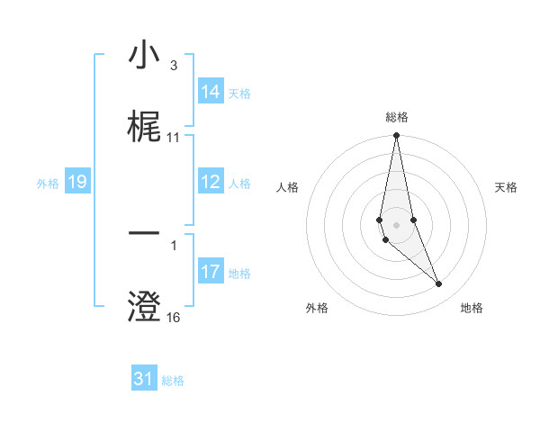 小梶 一澄さんを姓名の画数から五運を鑑定