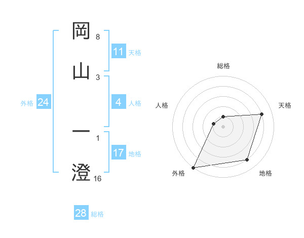 岡山 一澄さんを姓名の画数から五運を鑑定