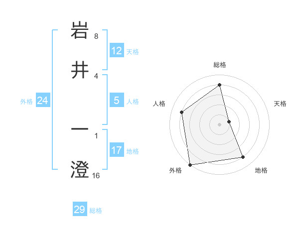岩井 一澄さんの総格は29画の4点!