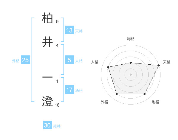 柏井 一澄さんを姓名の画数から五運を鑑定