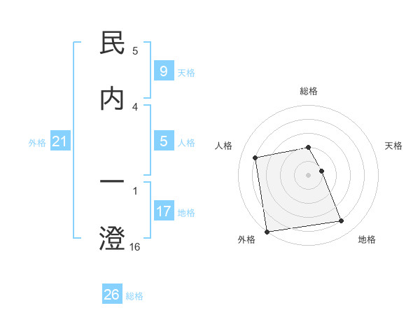民内 一澄さんの外格は21画の5点!