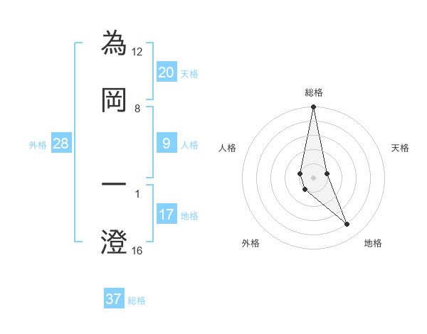 為岡 一澄さんの総格は37画の5点!