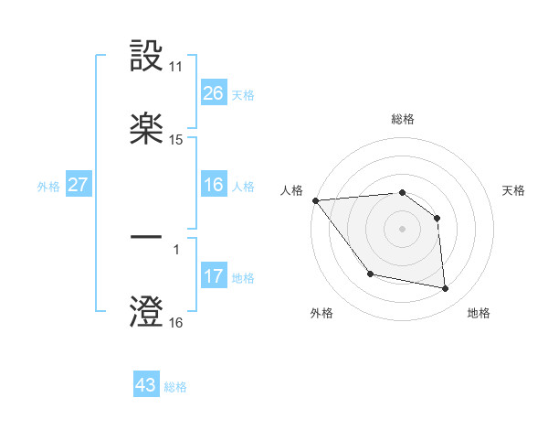 設楽 一澄さんを姓名の画数から五運を鑑定