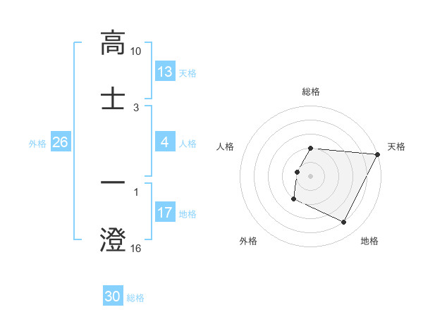 高士 一澄さんの天格は13画の5点!
