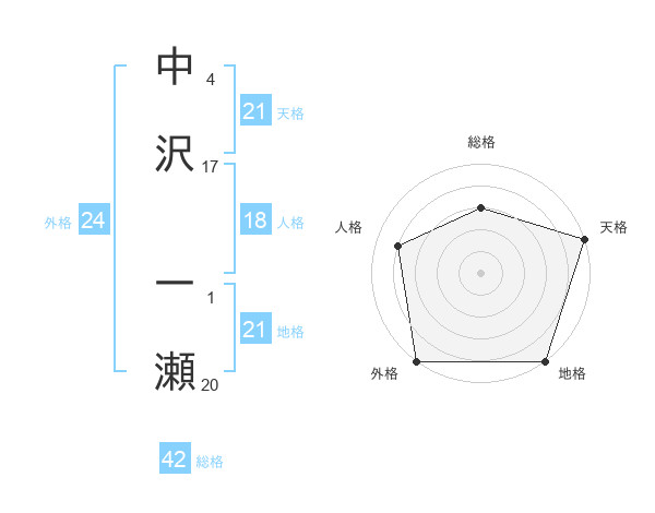 中沢 一瀬さんの天格は21画の5点!