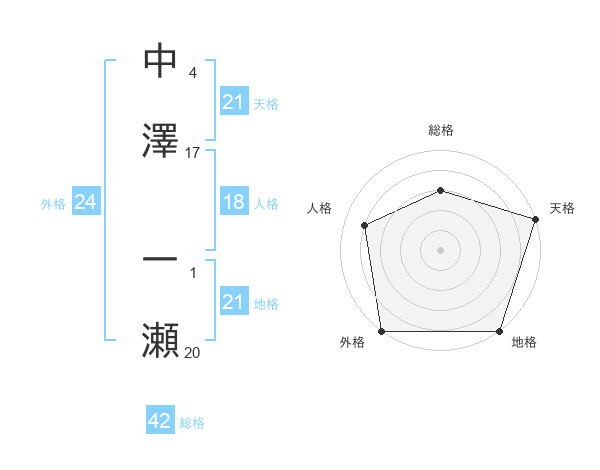 中澤 一瀬さんの天格は21画の5点!