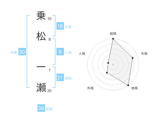 乗松 一瀬さんの天格は18画の4点!