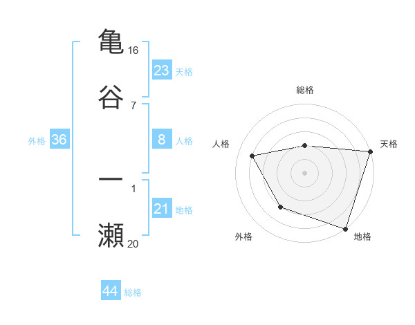 亀谷 一瀬さんの総格は44画の2点!