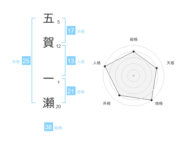 五賀 一瀬さんを姓名の画数から五運を鑑定