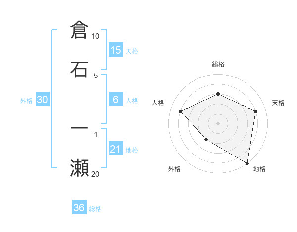 倉石 一瀬さんの地格は21画の5点!