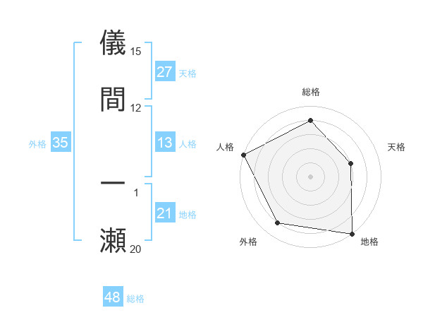 儀間 一瀬さんを姓名の画数から五運を鑑定