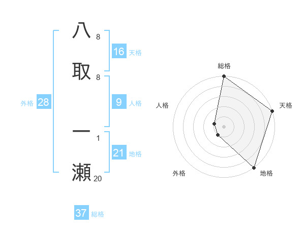八取 一瀬さんの総格は37画の5点!