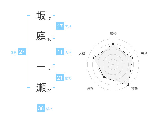 坂庭 一瀬さんの総格は38画の4点!