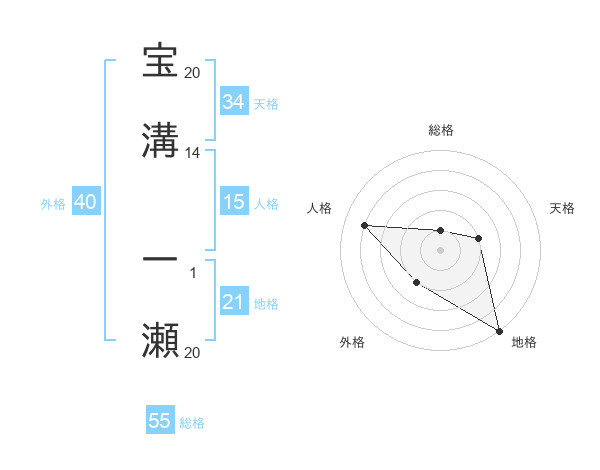 宝溝 一瀬さんの総格は55画の1点!