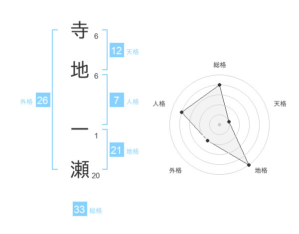 寺地 一瀬さんの総格は33画の4点!